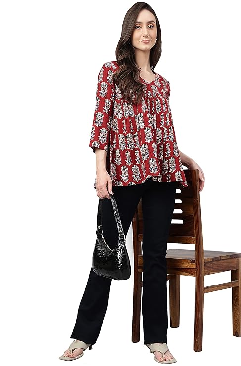 Be the first to review “Women’s Maroon Pure Cotton Floral Block Print Flared Top”